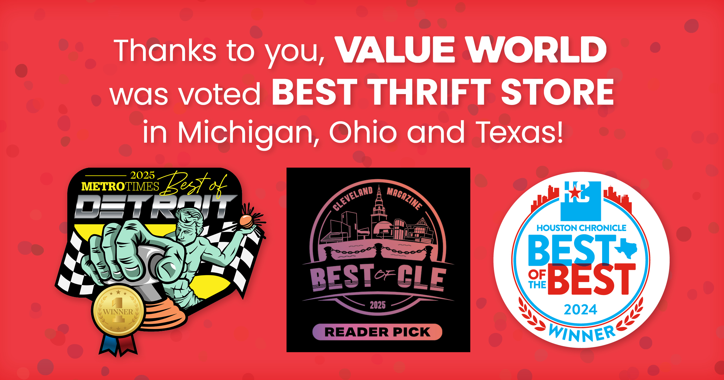 Find a Value World thrift store near you and start your thrift adventure. Whether you’re in Cleveland, Detroit, or Houston, you’re sure to discover great deals. Don’t forget to check the store hours before you visit!
